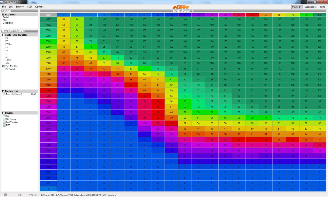 Ben ik dus de standaard en de akra mapping van de ecu even met elkaar gaan vergeleken en zag daar een groot verschil in de 2nd throttle map.