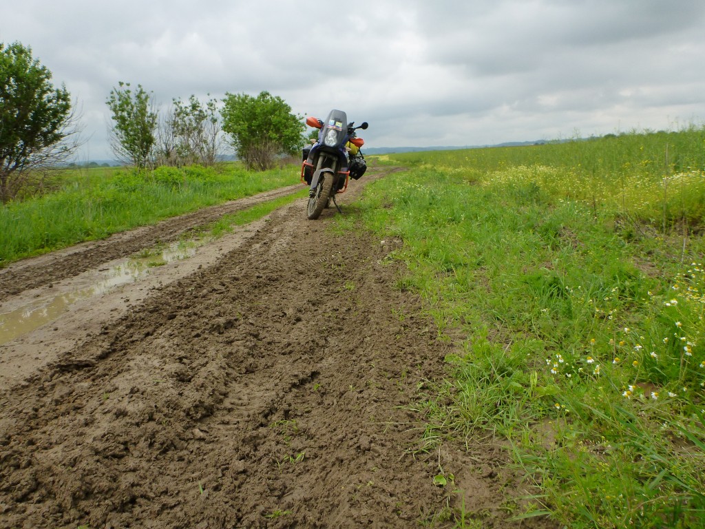 | De regen maakte de klei/leem-paden lastig rijdbaar voor zwaardere motoren |