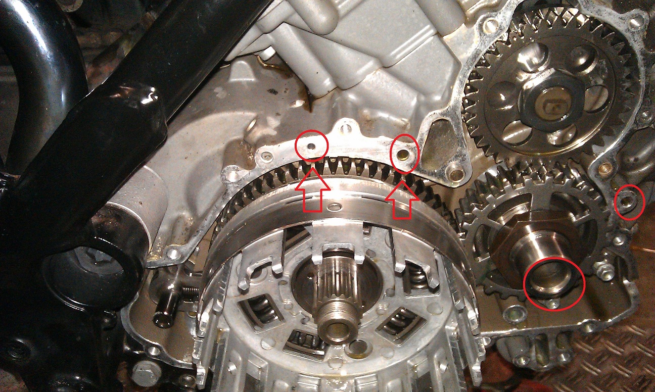 op de foto die ik heb gestuurd zit recht onder de kruk as een langwerpig gat. de is het olie kanaal vanaf het hart van de oliefilter. deze gaat de deksel aan de zijkant is en vertakt zich daar, naar volgens mij de kanalen die ik rood heb omcirkeld. maar daarna weer ik het niet.