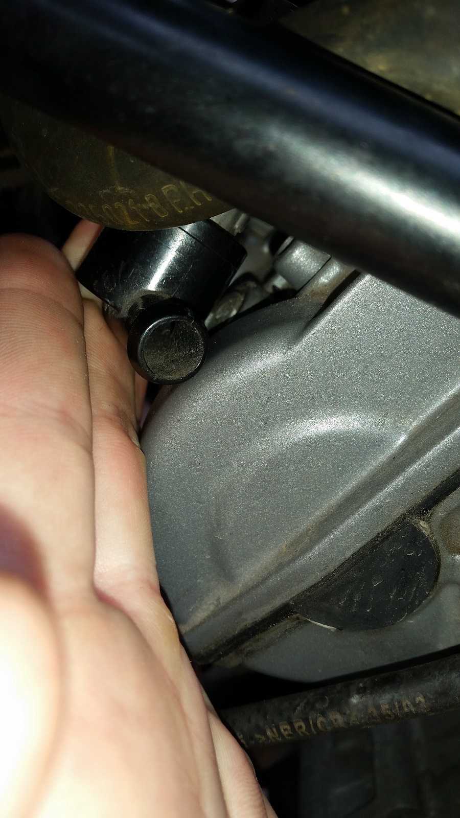 Vandaag al het plastic eraf gehaald en zag ik dat, wat ik aanneem een brandstofslang is. Deze afgescheurd was en bij het laten lopen van de motor de brandstof eruit liep. Ik heb een aantal foto's gemaakt ter verduidelijking.