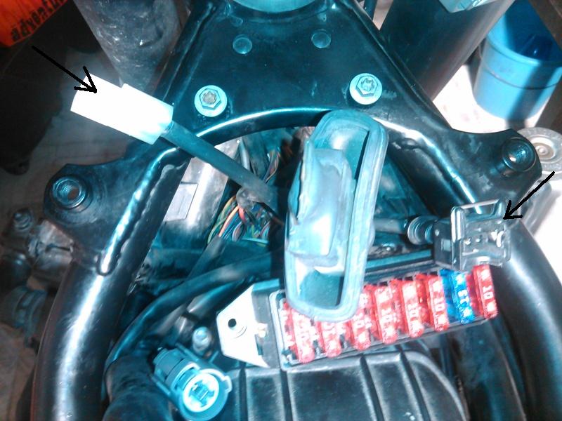 Er is een kleine witte fiche en de zwarte fiche. De witte waarschijnlijk voor extra aansluiting maar die zwarte?? iets vergeten onder de luchtbox?