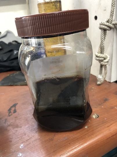 Zie foto...echter vond ik de nieuwe olie er wel erg zwart uitzien. Ook viel mij op dat deze Motorex olie wel Dreft lijkt....