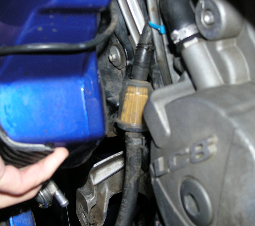 | filtertje achter de tank, tank iets opzij gehouden om het te kunnen zien. |