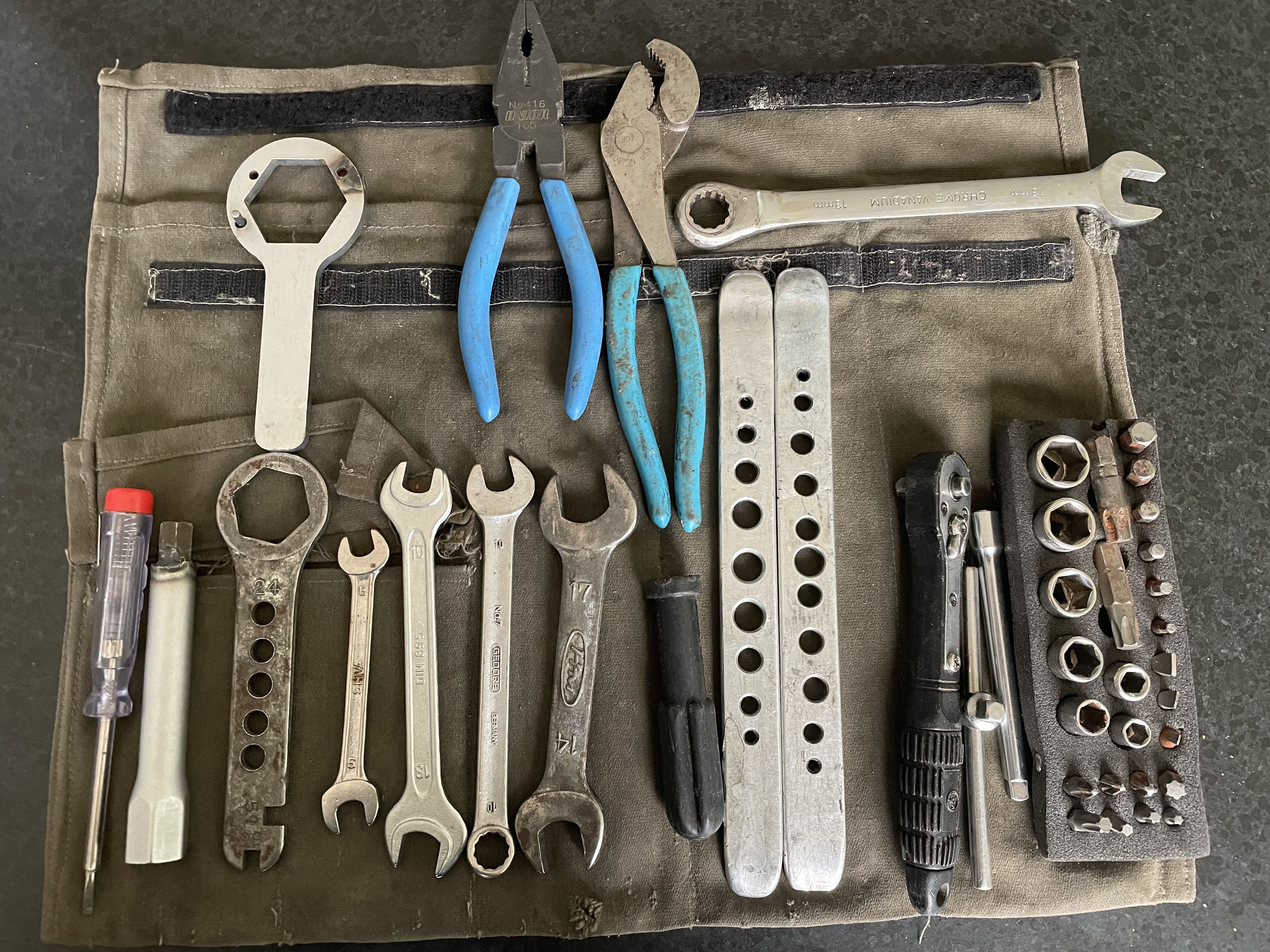 - ik heb altijd een 1/4 dopsetje bij me (geselecteerde maten), net daarin een bithouer en dan de imbus en tox bits die je nodig hebt.