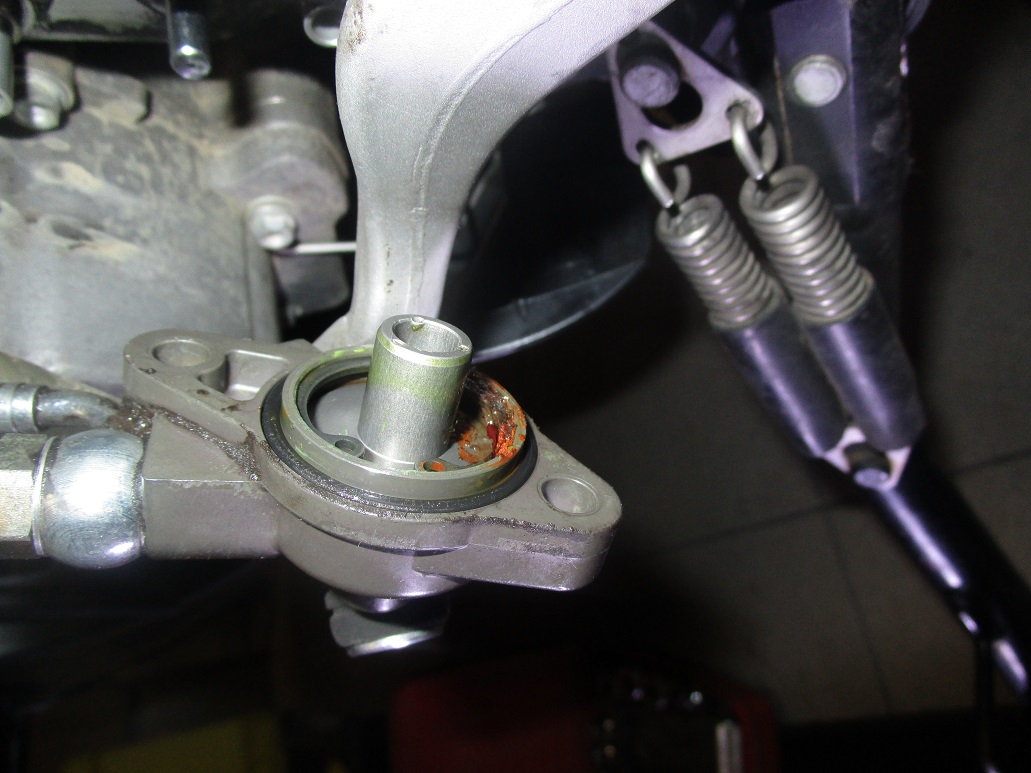 Door het aangekoekte spul zit de piston ook scheef als hij uitgeschoven zit.