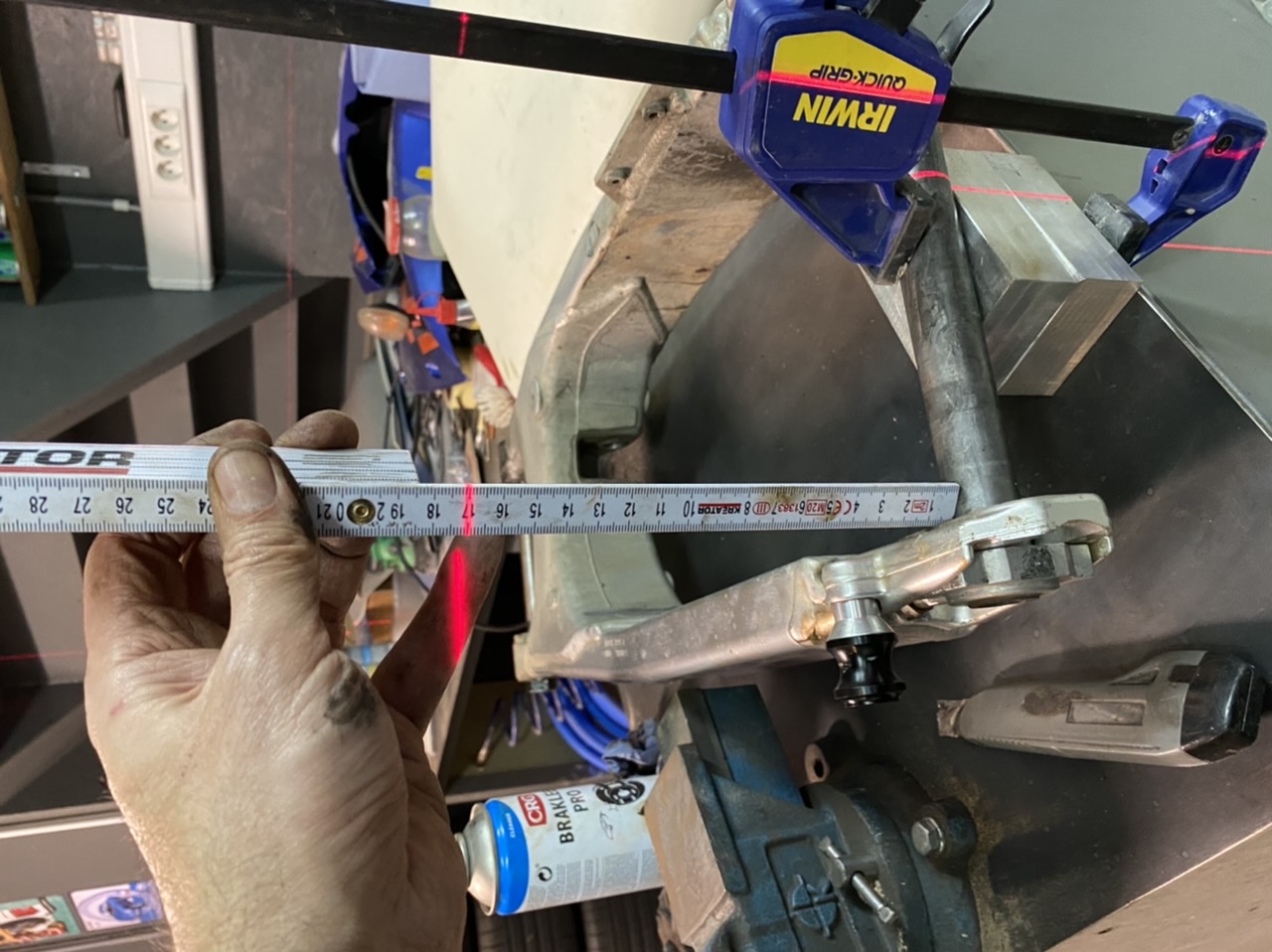 - het opmeten van de stand van het wiel in de achtervork is niet de juiste methode en garandeert niet dat je wielen uitgelijnt staan.
