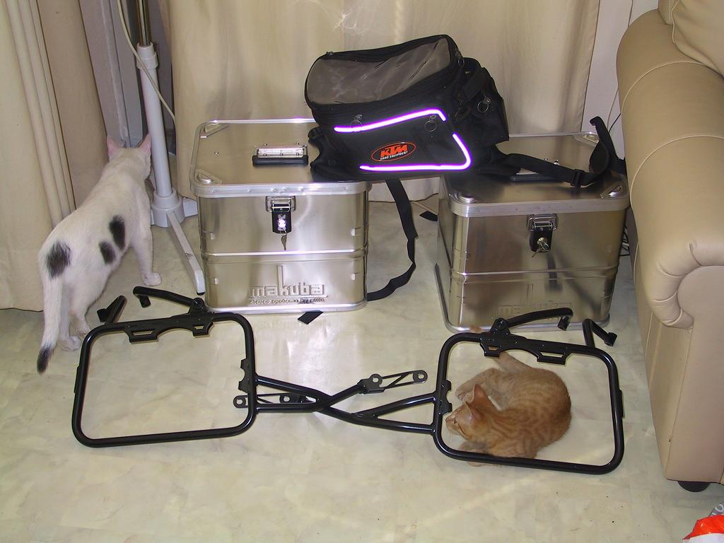 Het was een beetje haastwerk, maar ik heb koffers gemaakt uit aluminium. De kosten vielen uiteindelijk nog wel tegen, maar toch fors minder dan 869 euri. Met name het rek was takkeveel werk. Om dat een beetje mooi te krijgen en toch stevig genoeg. Maar dan ook weer zo, dat het achterframe niet afbreekt als je op je bek pleurt... Altijd moeilijk.