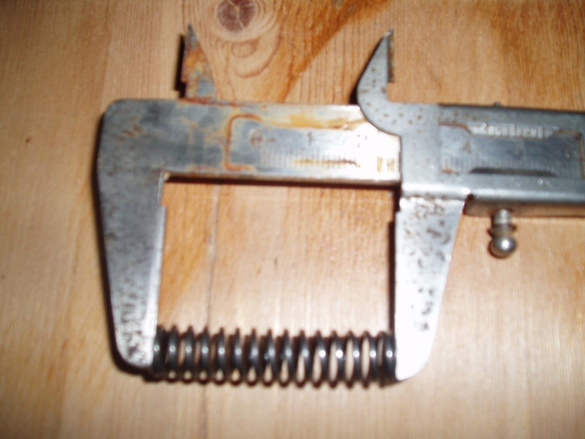 Eerst een uur gepriegeld met m'n circliptang onder de motor, om zo de circlip los te krijgen van die de veer en dumpvalve op z'n plaats houdt. Voor het tandartsspiegeltje had ik geen ruimte (lees motoriek). Vervolgens motor uit pure frustratie maar op z'n linkerkant gegooid: "hey, das makkelijk"....klik eruit. Tip voor anderen, duw effe een stop op je benzineleidingen...maargoed...effe dweilen en dat was weer opgeruimt. Veertje vervolgens gecheckt, die was inderdaad te kort (foto 2): 41,6mm. De nieuwe is 42,8mm en volgens het werkplaatshandboek moet de veer bij 42mm vervangen worden. Laten we hopen dat dit het is.