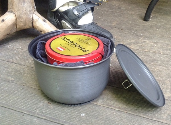 Oerdegelijk en klein pakbaar. Zoals je ziet brander past net in de pan met een handdoek ertussen. |