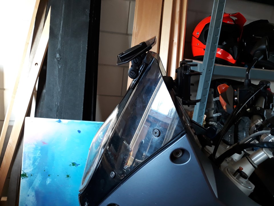 So far so good en ik dacht dat het niet beter ging worden dan wat ik nu had bereikt. Rijden zonder ruit zou natuurlijk de laatste optie zijn en zal ongetwijfeld veel gaan helpen maar dan kan ik m'n mobiel, die op het dashboard in een houder zit, nooit uit de regen en zand kunnen houden. Dus daarvoor wou wel een schermpje houden.