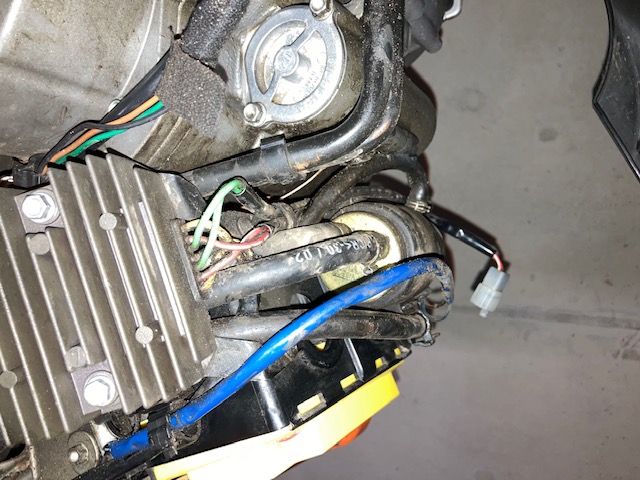 | Misschien nog even de grote bruine platte stekker tussen de dynamo en SR loshalen om uit te sluiten of het waar het probleem in zit. Dan kun je ook meteen even de dynamo doormeten, elke spoel naar aarde moet oneindige weerstand zijn en tussen de spoelen in Max 1 ohm.