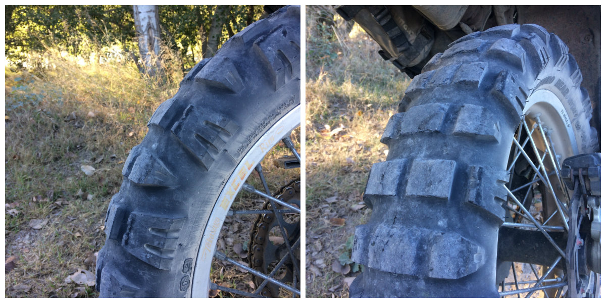 De E07 achterband blijft op de andere velg zitten voor ritjes in de buurt die voornamelijk over de weg zijn. Als ik een weekendje ga offroaden gaat er sowieso iets groffers in, anders kom ik voor mijn gevoel niet echt vooruit met een E07 achterband.