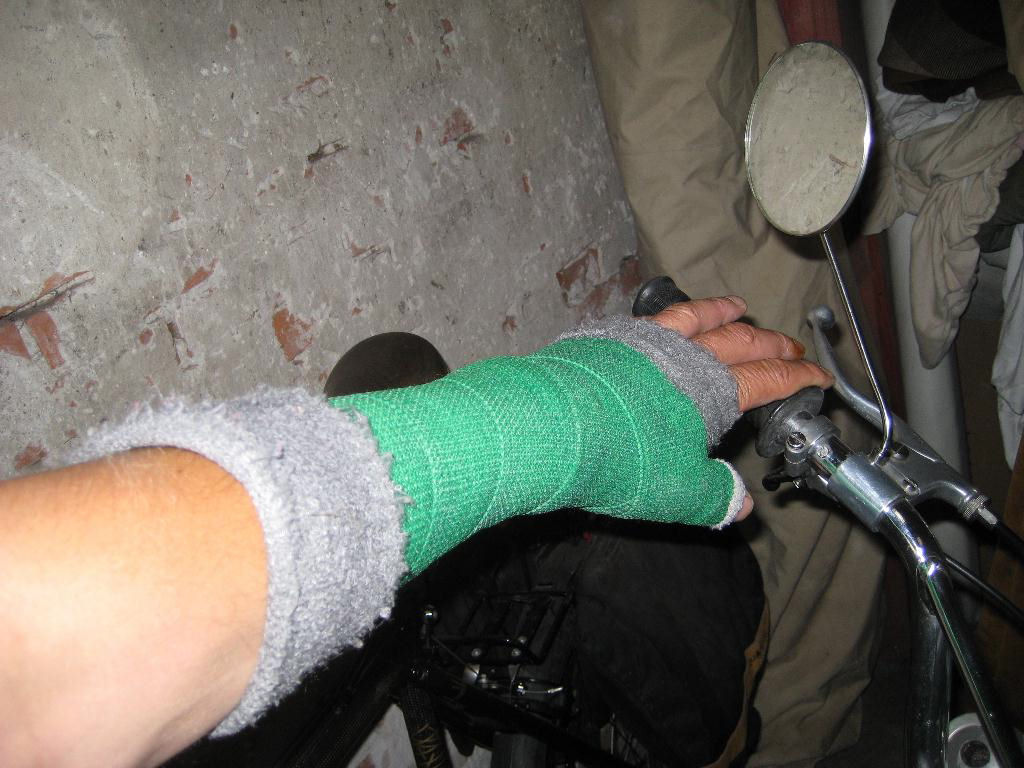 het is alsof de duivel ermee speelt: Ik moet voor de volgende rit verstek laten gaan: domme val op een piste in Ijsland en beide botten in mijn linker voorarm zijn rats af. Mijn hand stond niet meer echt op zijn plaats cry .