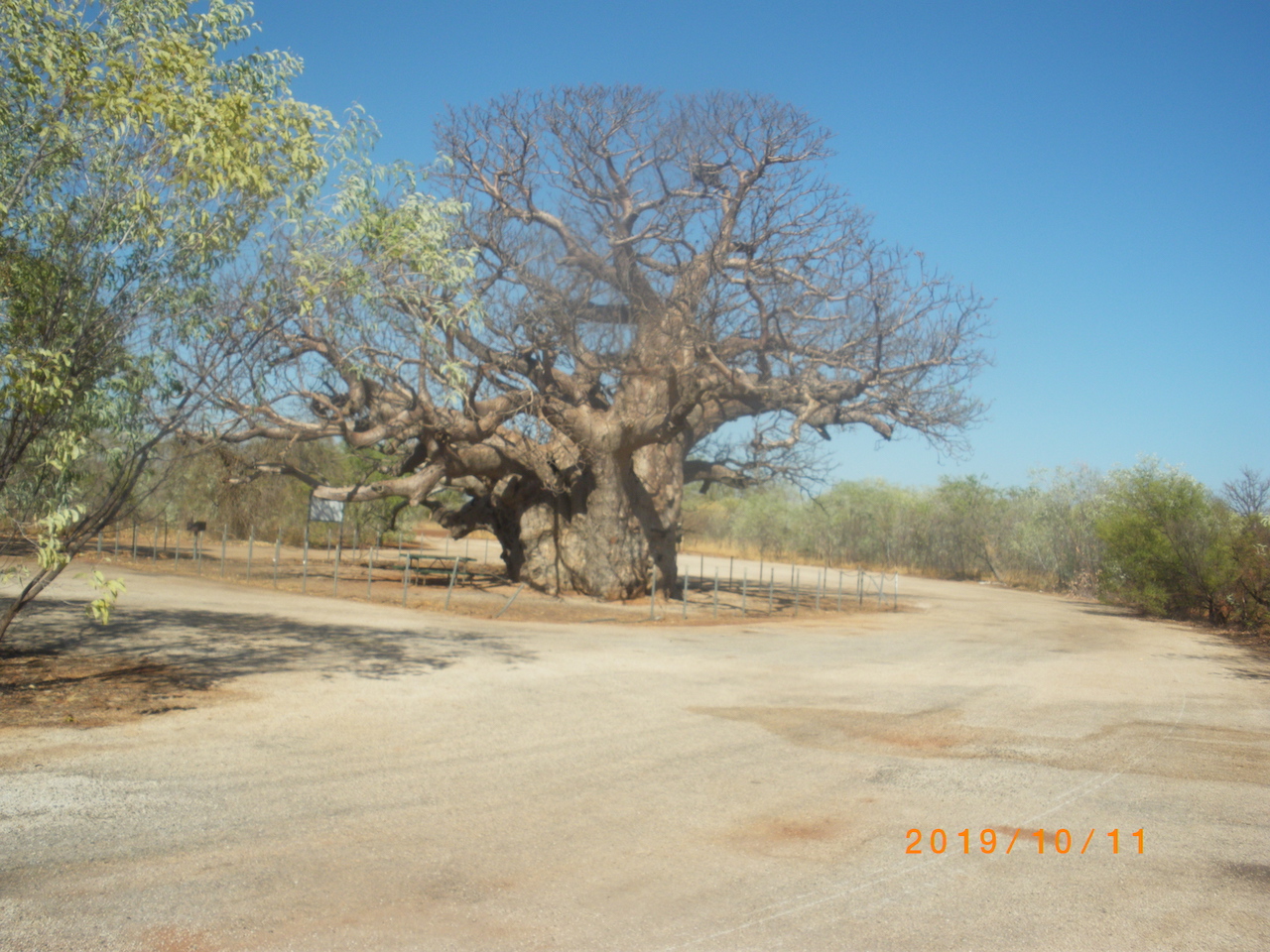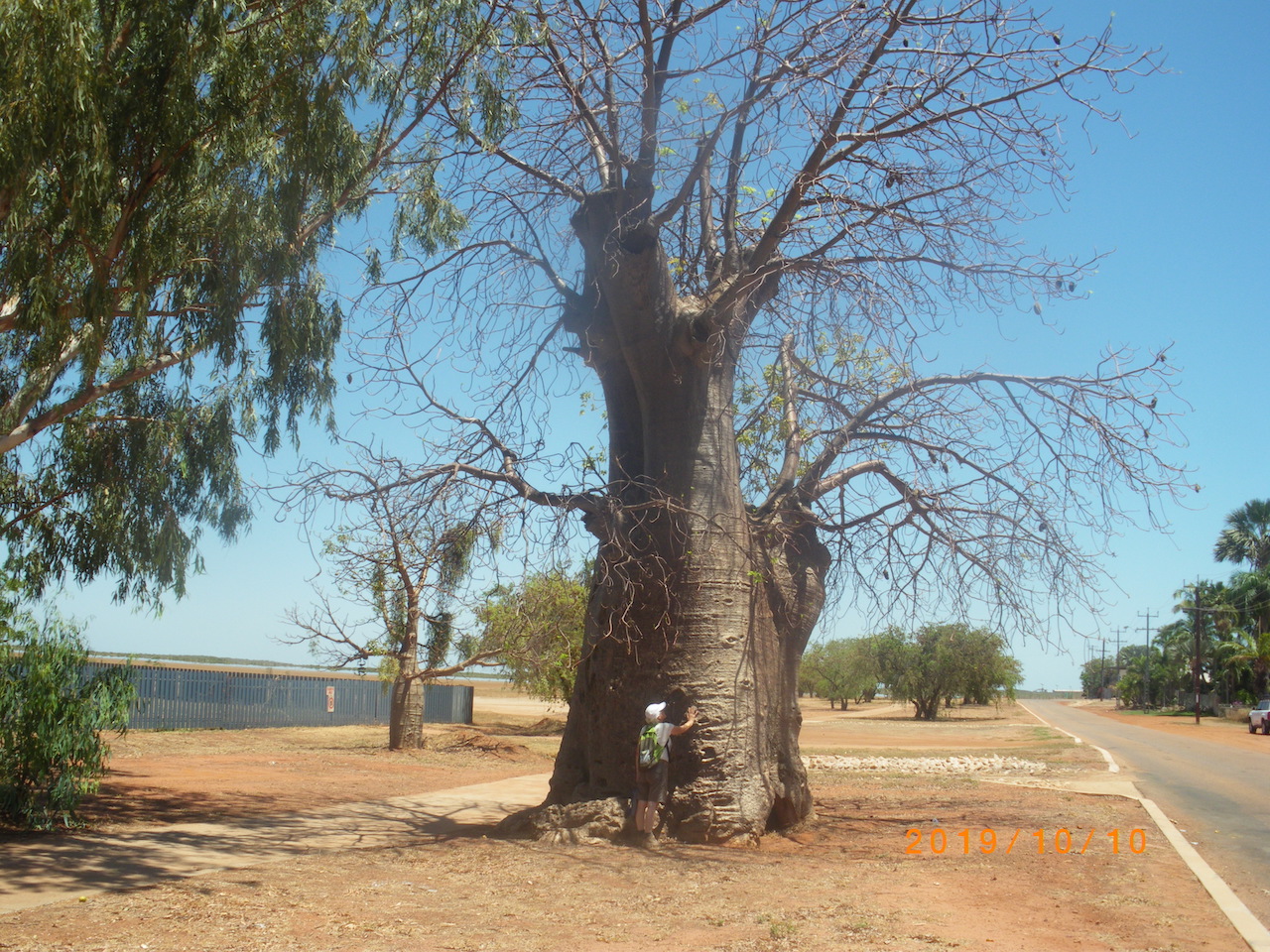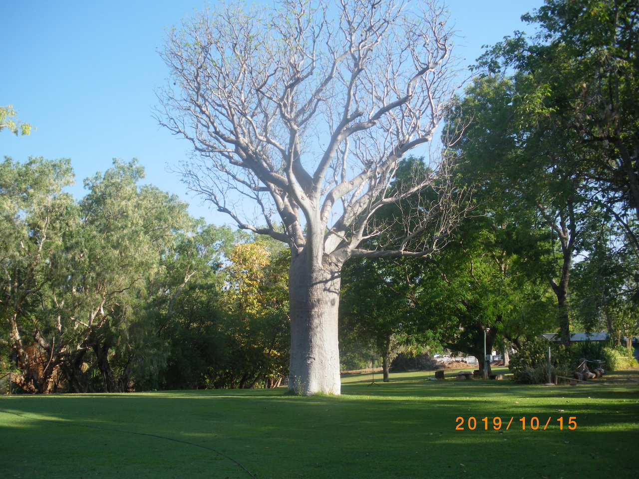 Bij Katherine had ik camping North Bank Park uitgekozen, net buiten het stadje en aan de rivier. Als we de camping oprijden zien we allerlei rommel en machines staan. Als dit een camping moet voorstellen wil ik nog wel eens een Australische autosloop zien. We rijden terug naar het stadje en besluiten bij Boab Caravan Park te gaan kamperen.