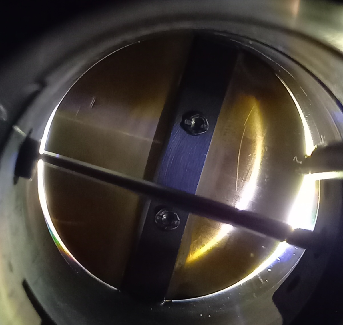 Er zijn ter hoogte van het randje van de gesloten gasklep drie kleine gaatjes en de gasklep voor en achter staat in beide gevallen mooi halverwege van één zo'n gaatje.