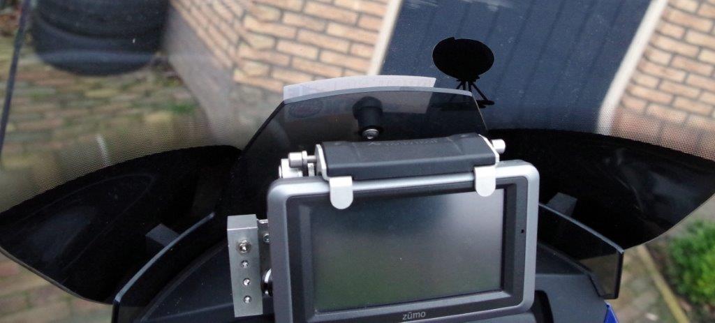 boven de koplamp heb ik dan een plastic boord bevestigd op het scherm met velcro, met een opening van ong een cm voor het binnenscherm...