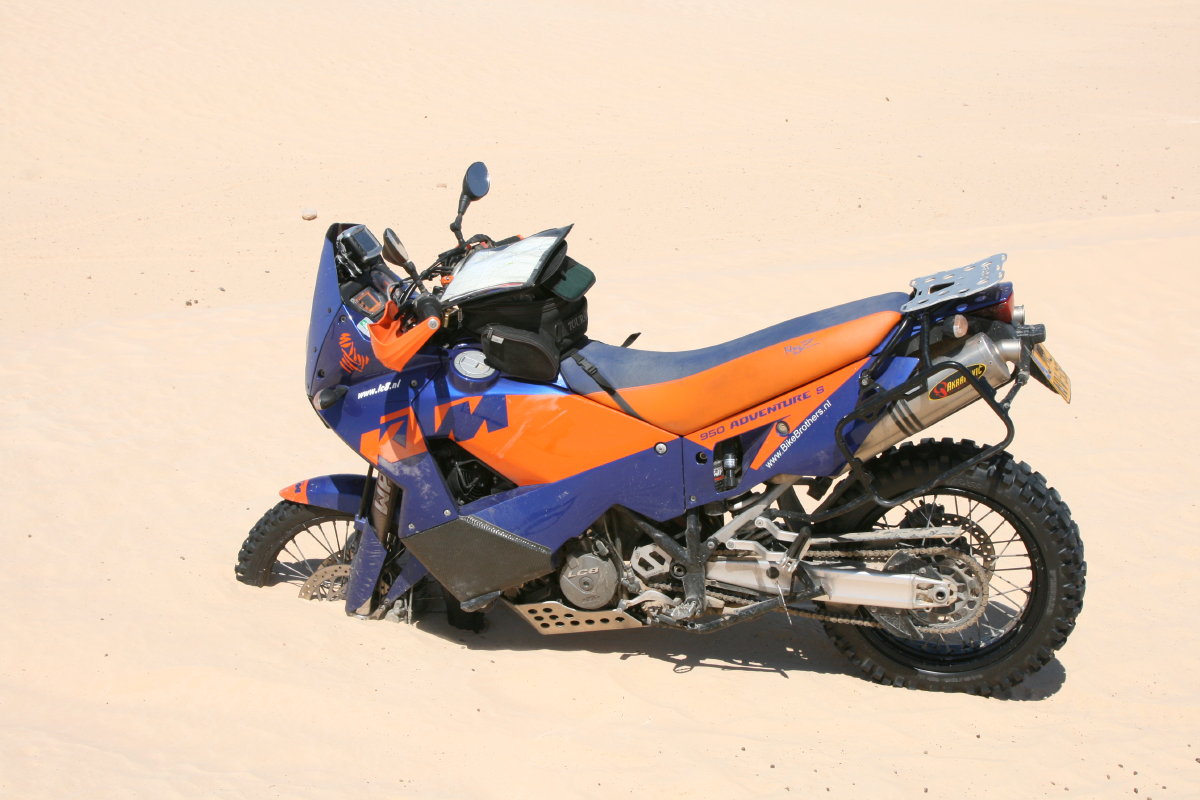 1 KTM maakt een vreselijk mechanisch geluid en ik besluit dat de motor in de duinen moet blijven staan.