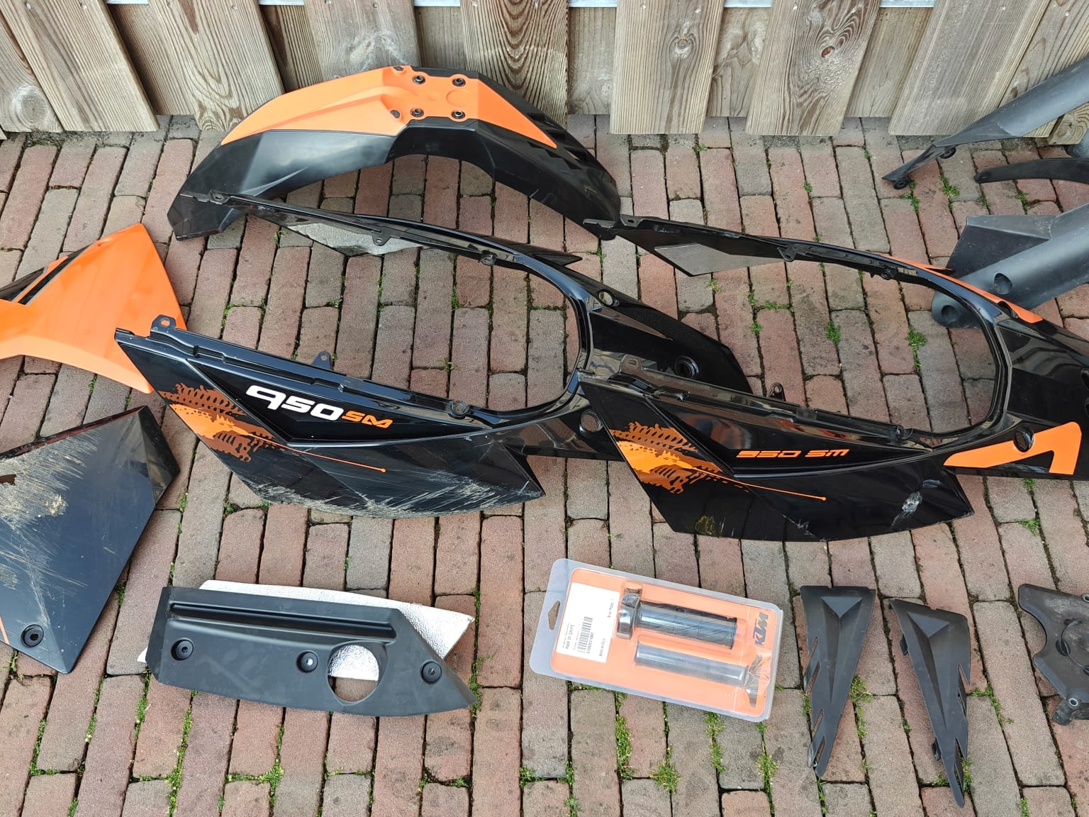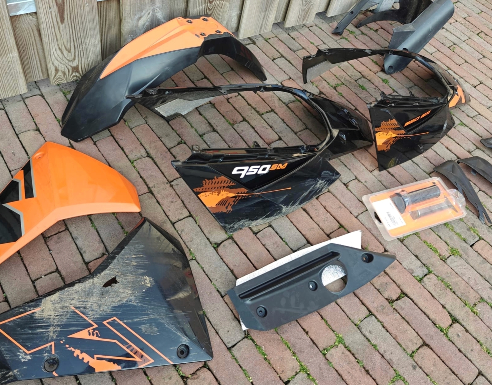 De 950SM is na dik 11,5 jaar van eigenaar verwisseld en nu heb ik nog enkele onderdelen liggen die ik ooit met de koop van een brandstoftank heb overgenomen. De meeste kappen hebben flinke schade en zelfs een barst, maar ik zal het toch hier nog delen voordat ik het zo weggooi. Misschien interessant voor iemand die zelf de mogelijkheid heeft het te herstellen ofzo.