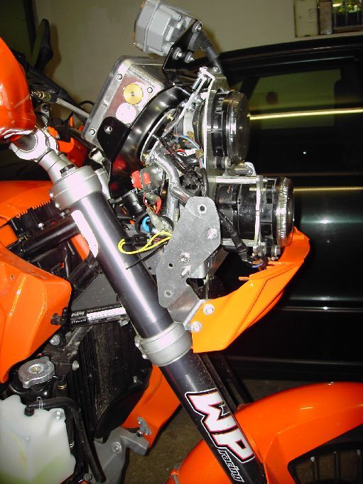 Nou ben ik geen mechanicus maar ik weet heel goed wat kapot kan en hoe dat kan gebeuren, van daar. Van Johan en Alex heb ik begrepen dat het typisch KTM is dat je na een smak over je zere plek wrijft, de KTM oppakt en weer verder gaat met rijden, het zal dus wel kloppen over die materialen. Ik ga het eens lekker verder uitzoeken met de lamp.