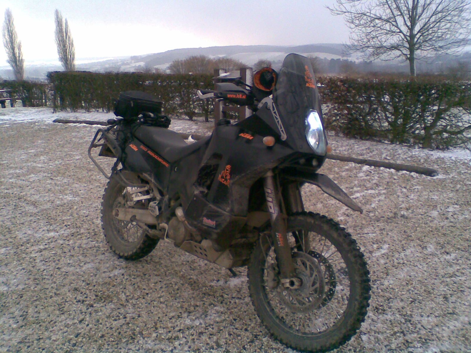 Inderdaad Koen. Mokam had een hele mooie rit uitgezet. Kwam deels overeen met de oude route maar er waren toch ook wat nieuwe wegen bij. In het zuiden lag de sneeuw nog in een dun laagje hetgeen voor mij resulteerde in (wederom) een glij partijtje over de grond (mijn nieuwe jas was gelijk niet meer nieuw thumbsup _. De KTM had weer: ... helemaal niets.. Wat zijn die fietsen toch goed gebouwd voor het off-raod avontuur. Hij verbaasd me iedere keer weer. In ieder geval veel (smelt) water en modder. Voor deze rit ben je toch een uurtje of 5 bezig en alles in het mooie limburse land en een stukje Walonie. Heuvel op heuvel af, rivierdoorwading er bij. Mokam had het weer goed voor elkaar. Ik zag er uit als een varken en de KTM idem. Ook hier was men weer blij mee thuis laugh laugh