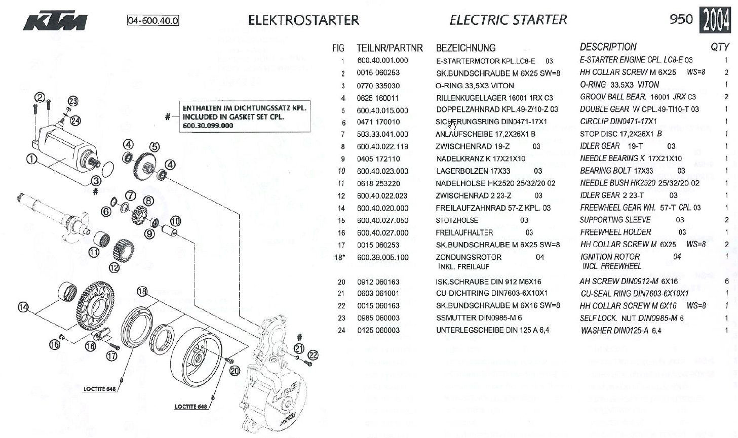 ik heb even gebeld met Lemmens, hij denkt ook dat het probleem in dat onderdeel 18 zit (520 euro .. shocked2 ). Ik kan geluk hebben dat het in een van de andere tandwielen zit (5 of 18 op de tekening, die zijn een paar tientjes ..) of de vertanding op de as van de startmotor (die zag ik voor 125 op marktplaats). Eerst maar eens open maken en dan verder kijken.