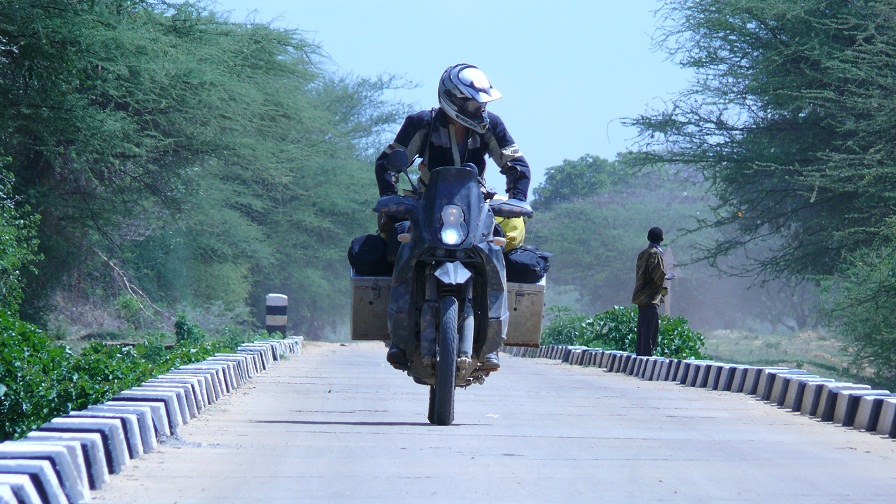 Wat me wel opvalt is dat niemand er over praat, die op reis gaat, hoe vaak hij is gevallen is. Ik heb er in ieder geval zeker 10 keer aan moeten geloven. Steeds in zeeer diep zand waar ik op snelheid doorheen wilde maar steeds sloeg het voorwiel vast en lag ik op mijn fl... Komt natuurlijk ook door het gewicht. Heb ook met dit gewicht leren omomgaan. Gaat nu prima. Diep zand neem ik alleen nog maar stapvoets. Want een beladen motor oprapen doe je niet zomaar even. Wordt anders afbouwen en rechtzetten.Met bepakkig rijden is toch anders als zondert. En zeker als jer teveel bij je hebt, zoals ik. Van mij gaat in ieder gebval 25 kilo naar huis... (BMW's vertre vanuit Arusha Tanzania naar Nedertland). Als iemand tipsd heeft natuurlijk welkom !!!