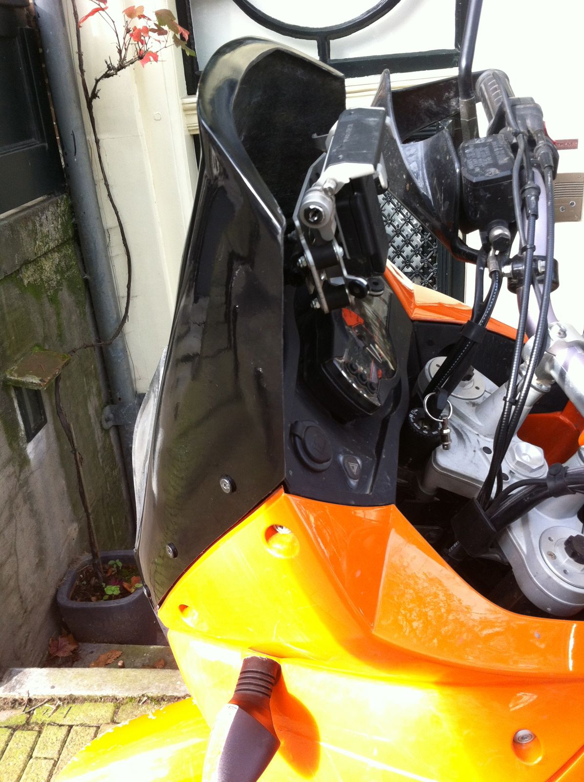 Touratech heeft ook opties om hun houder bovenop de dash te zetten. Deze verschilt voor de 2009 modellen en later...