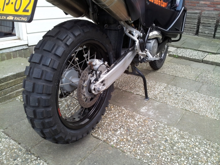 Ik heb er nu TKC80 onder zitten, mag er niet sneller mee dan 160 en daar zit je helaas al snel op met de KTM..... Op de snelheid na ben ik verder zeer goed te spreken over deze band, op de snelweg, in de stad en in het terrein. Ook bij regen, al zijn er rijders die zeggen dat de TKC80 zonder te waarschuwen plotseling kan wegglijden als het regent. Heb daar nog niets van gemerkt en ik ga echt niet langzaam door de bochten, als je het gas maar met beleid open gooit. Het enige waar je op moet letten zijn de witte verfstrepen en zeker de opgeplakte strepen en taartpunten, maar die zijn glad met elke band!