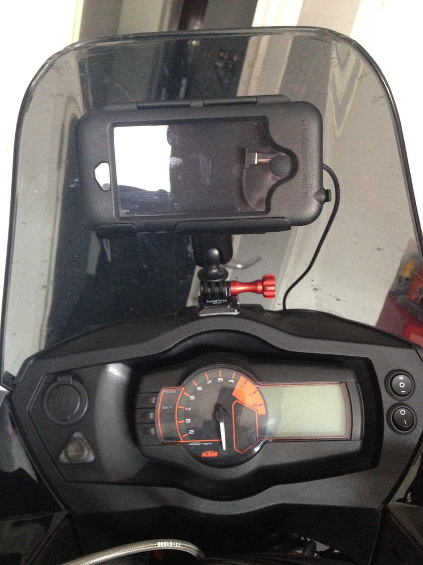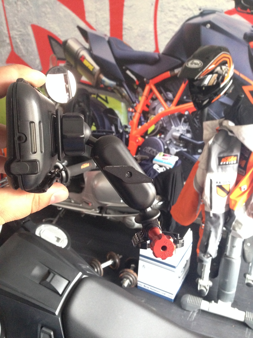 Ik heb op mijn Adventure een Garmin Zumo 550, hij zit met een systeem vast aan het stuur. Nu wil ik liever mijn GPS achter het scherm bevestigen met zo'n kogeltje.