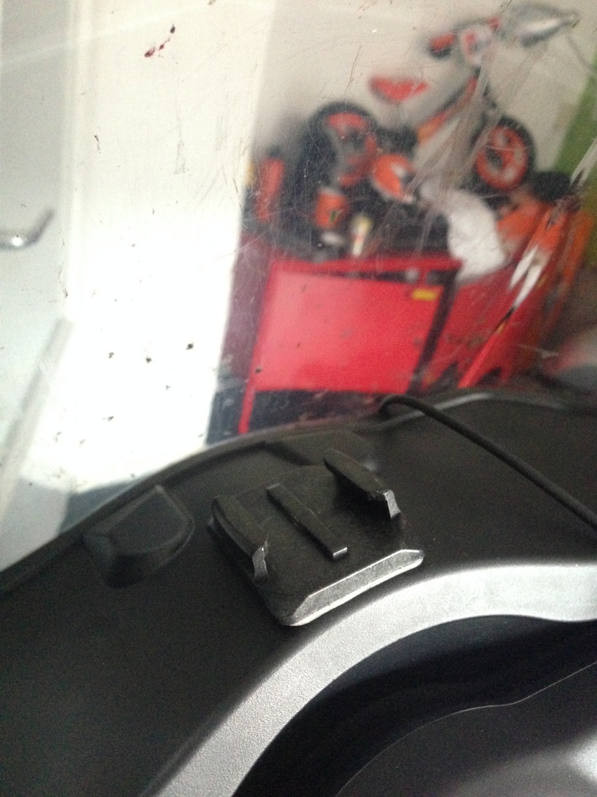 Dat gopro mountje zit idd geplakt met de standaard 3M sticker. Deze zit als een huis. ik gebruik hem nu al 10 maanden op deze manier.