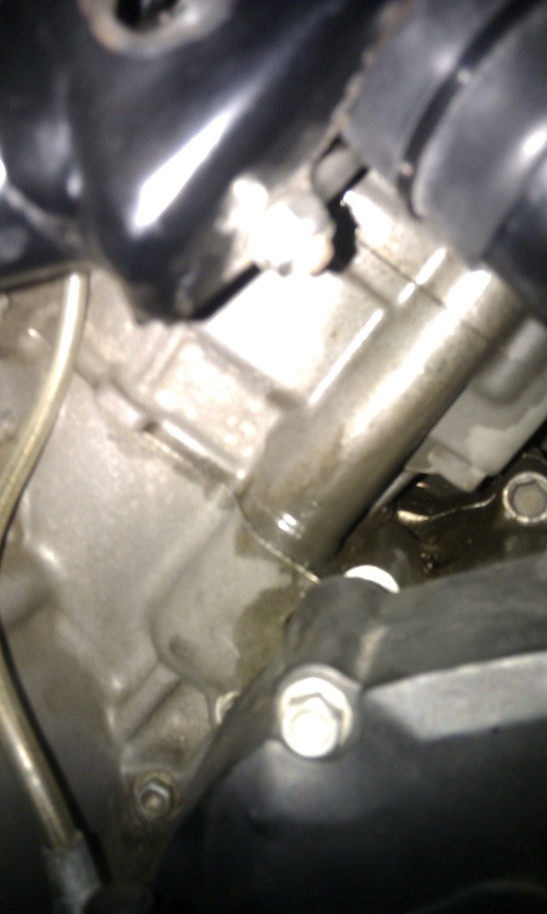 Afgelopen weekend heb ik onderhoud aan de motor gedaan en nu zit er olie op de achterste cilinder aan de linkerkant. Vlak daarboven zit een gaatje. Het gaatje zit achter de klauw van de valbeugel. Kan het zijn dat dat een soort overloop is? Of heeft een van jullie enig idee waar het anders vandaan kan komen?
