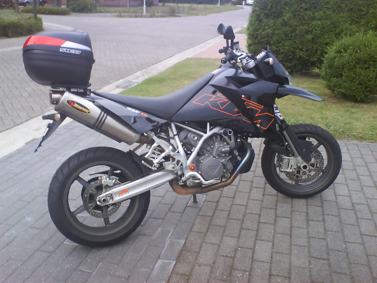 | Hoi ik ben Tonnes en ik wil ook een koffer kopen voor mijn SM. IK wil graag weten of de orginele topkoffer van KTM bevalt. Volgens mij heb jij de 37L uitvoering. Heb je daar genoeg aan voor een weekje vakantie alleen of kun je beter de grotere nemen? Is hij goed waterdicht? En beviel het zo'n ding achterop?