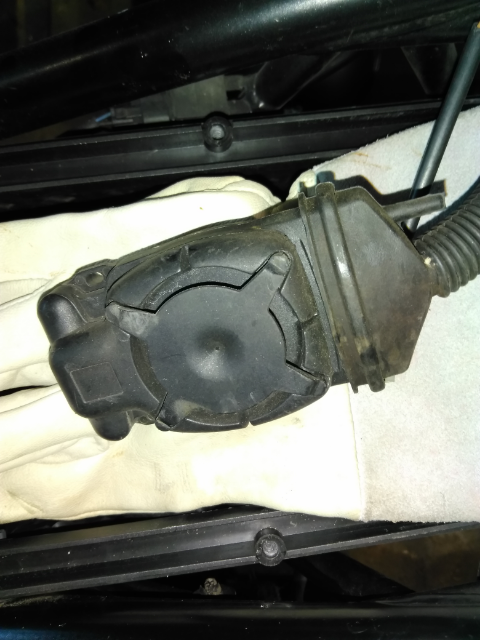 Het lag los onder de snorkel, zo'n beetje tegen 't balhoofd aan. Er komen 2 kabels uit: