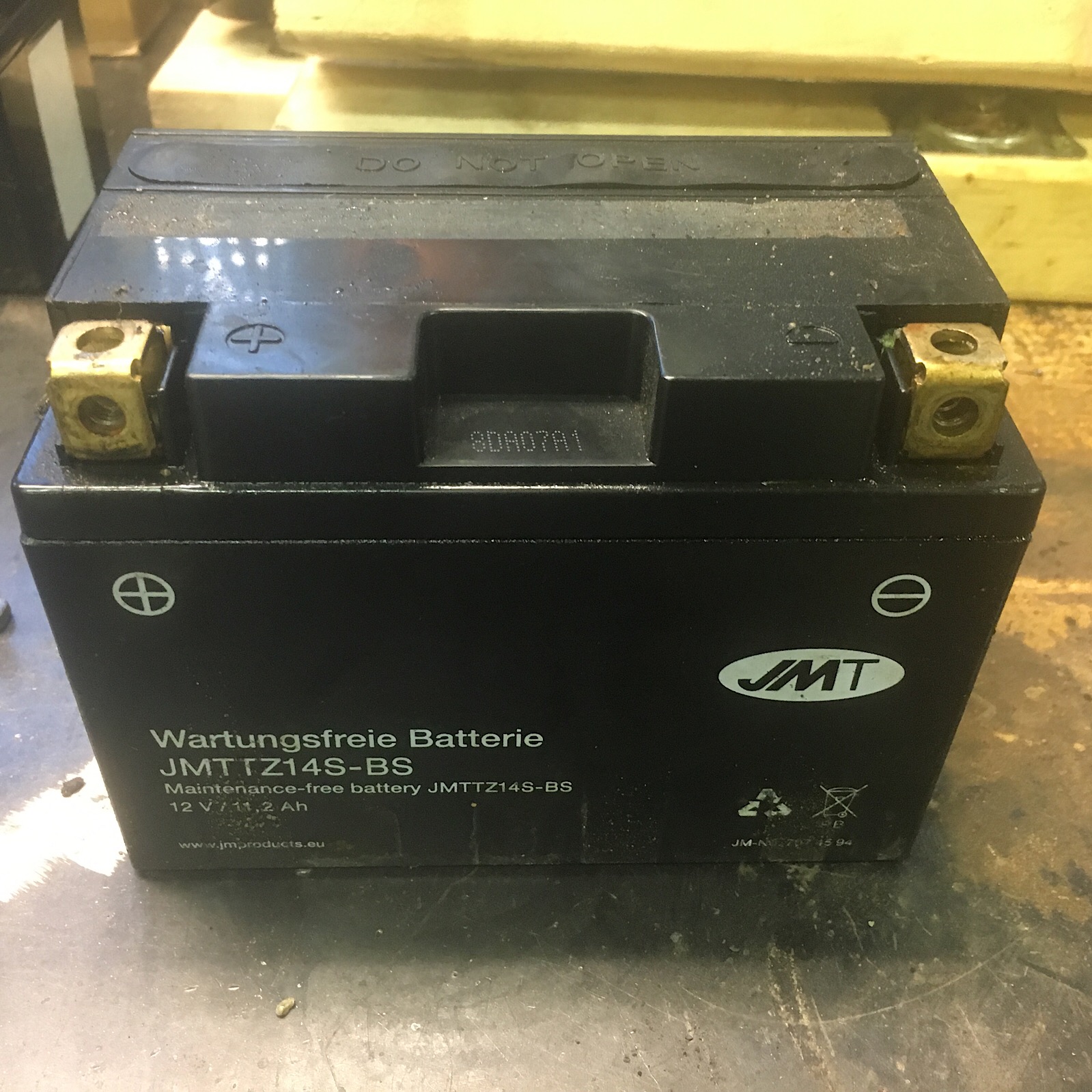 Het viel me van het najaar al een keer eerder ook al op, de accu van mijn 990 Adv van 2006 is soms een beetje nat bovenop. Eerst dacht ik dat het regenwater was, maar het lijkt er toch op dat het accuzuur is.