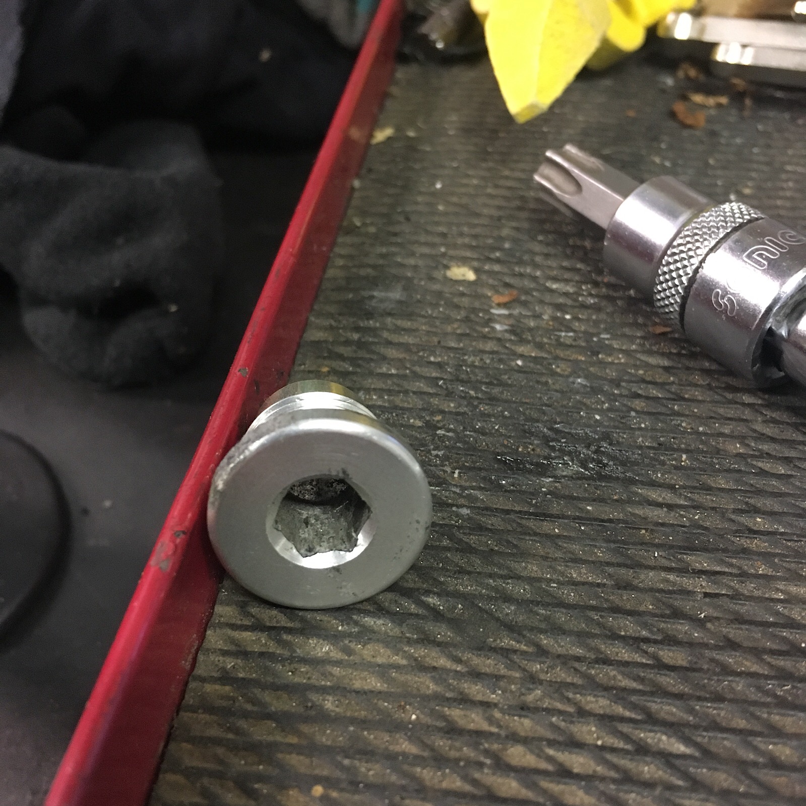 Ik ben op zoek naar een kettingspanner bout voor mijn 990 adv van 2006, degene die de veer op spanning houd. Zie foto. Iemand zoiets liggen?