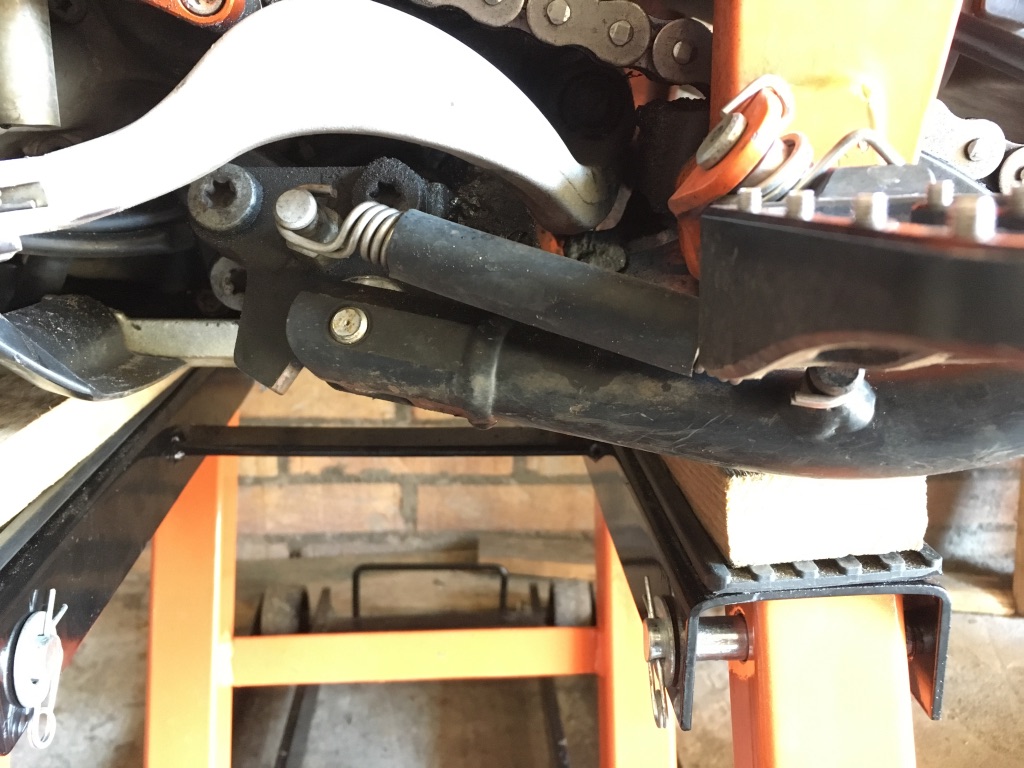 Ik ben erachter. De bovenste veer eraf gehaald èn een stukje van de kettinggeleider af moeten halen. Hier kwam de pook ook tegenaan!