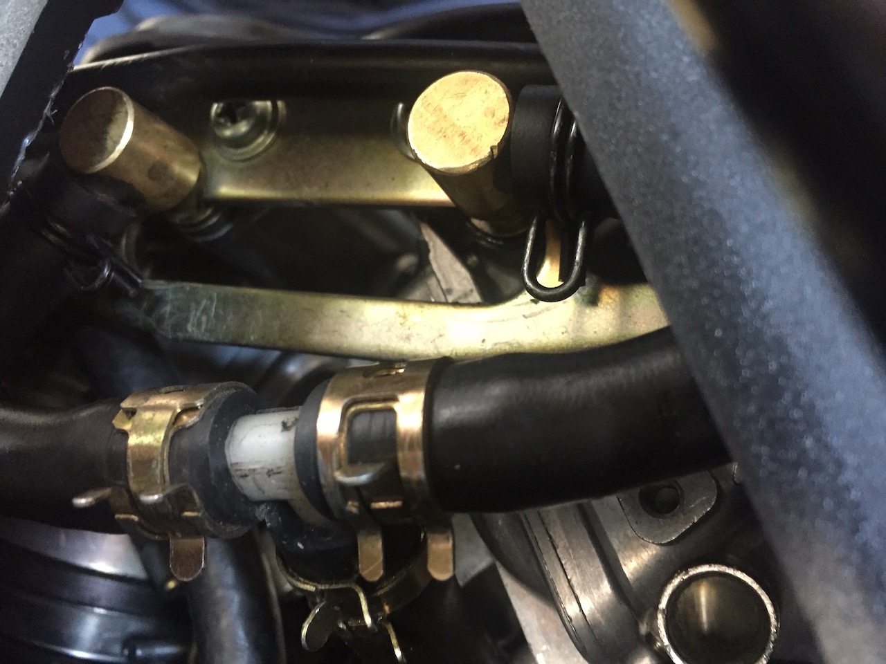 Toen dat gerepareerd was en ik de motor startte kwam er benzine uit de overloopslang van de luchtfilterkast. Bleek dat de messing aansluiting op de achterste carburateur lekte. Tanks eraf, carburateurs eruit. Kortom een dag sleutelen. De o-ringetjes (3 stuks) van de achterste aansluiting bleken door het trillen op het schip zover afgesleten dat de benzine er langs kon. Nu met pakkingskit in elkaar gezet en tot nu toe blijft het dicht.