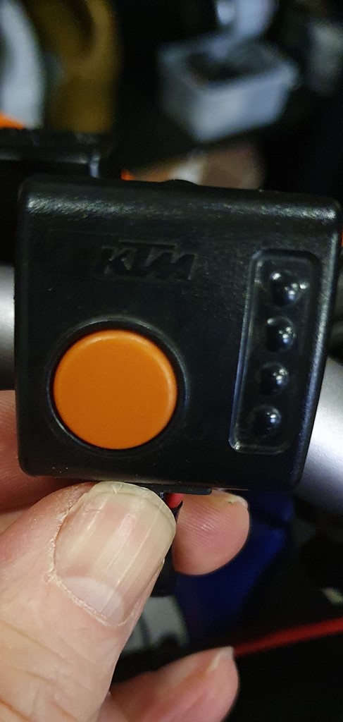 Het betreft de originele handvatverwarming van KTM. De bevestiging voor aan het stuur is aan de achterkant gescheurd.